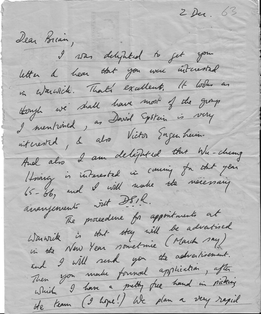 First Letter 1 November 1963
