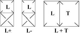 In what follows -L is the tangle L reflected in the plane of the tangle (diagram). Lower case letters are integral tangles and L is an arbitrary tangle. Products are associated from the left and -mn...pq means (-m)(-n)...(-p)(-q) etc. L- is L(-1)0, L+ is L10, and L+T is defined as indicated in the diagram following.