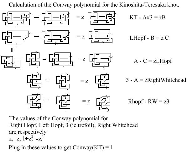 is a calculation of the Conway polynomial of the Kinoshita - Teresaka knot.
