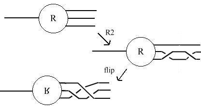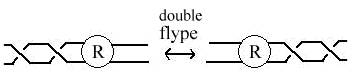 Notice that if we introduce two crossings using R2 then move one over with a flype we get: