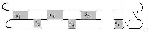 middle and outer string at the expense of adding a crossing between