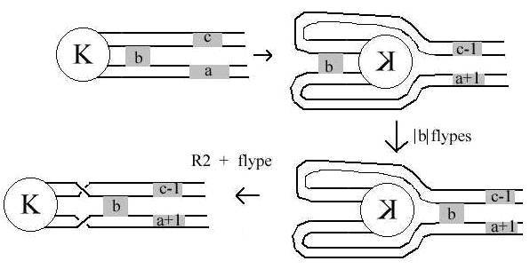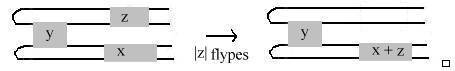 Proof The idea is to turn c's into a's by flyping. A flype moves a crossing across a part of a diagram at the expense of turning the part over: